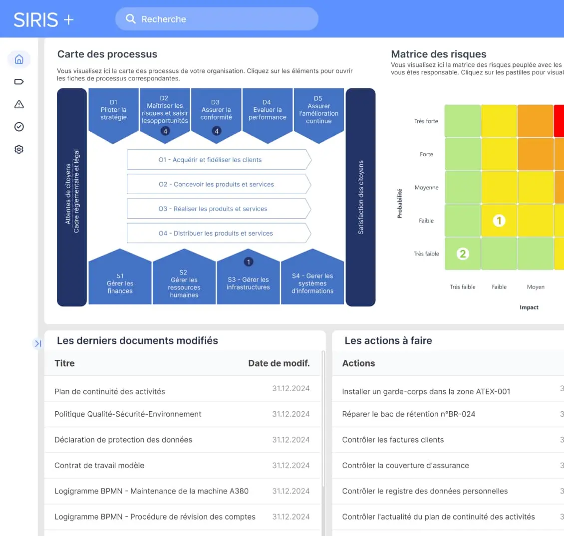 SIRIS+ solution qualité sécurité environnement Saas de nouvelle génération conçue et développée en Suisse.